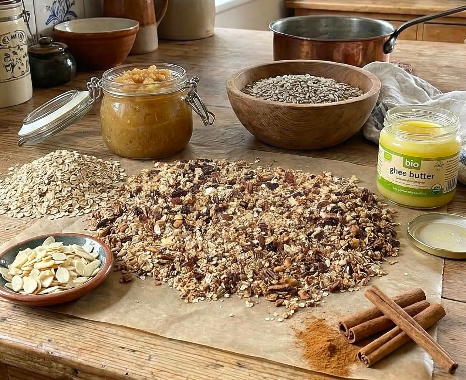 Más saciante y redonda: la combinación de avena + frutos secos + ghee da un desayuno más completo y consistente.