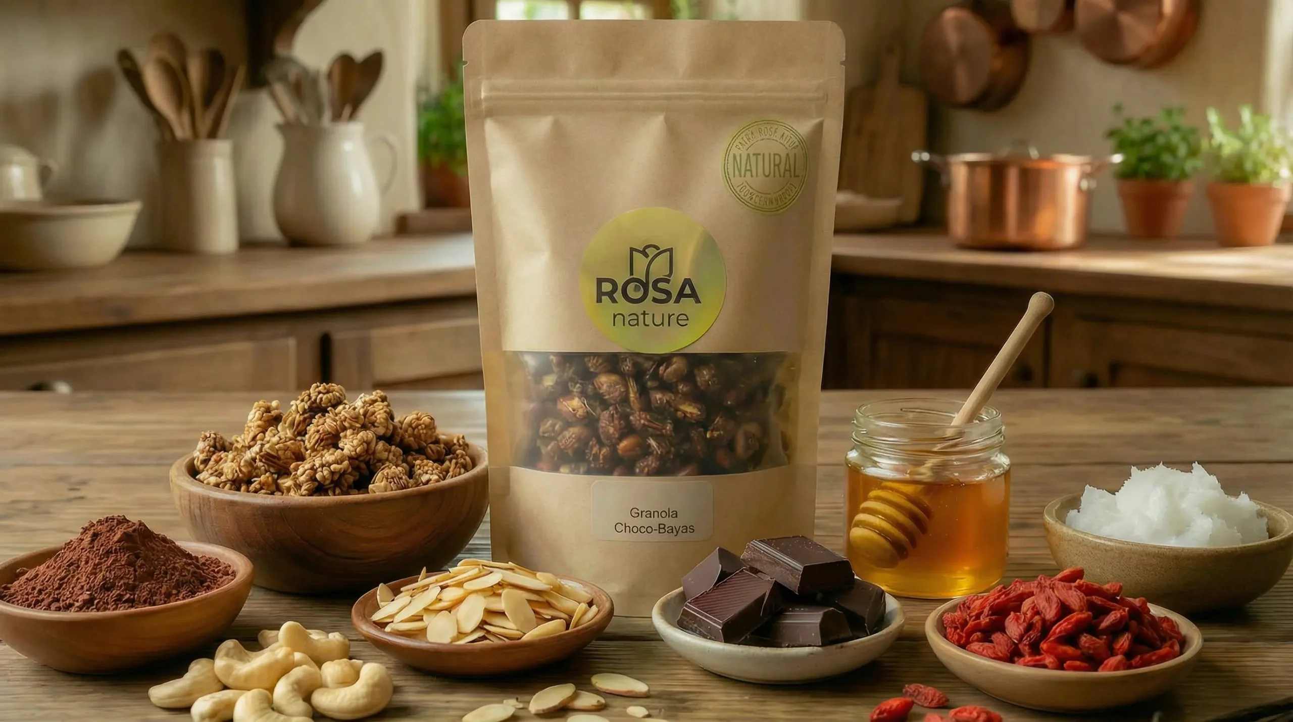 Ingredientes reales: frutos secos, semillas, fruta, cacao, especias y grasas de calidad para una experiencia más auténtica y sabrosa.